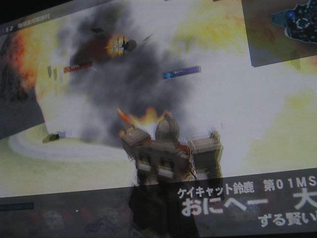 機体を2倍の速度で操るとら中佐は、残像を残しながら敵格闘機をビームサーベルで真っ二つにしつつ登って行きます。次々と機体を撃破され後が無いジオン軍は、最後におにへー大佐の制圧射撃により全機体を完全に破壊され、基地を明け渡すこととなりました。