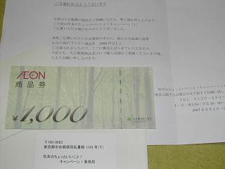 商品券が 届きました 年末に バーコード 1枚を 応募はがきに貼って 1枚だけ 応募です