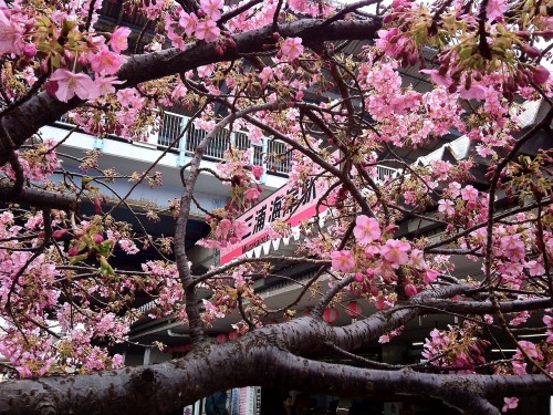 京浜急行 三浦海岸駅前の「河津桜」・・・・・・・・・・・・・・・・・・・・・・・・三浦海岸駅 〜 小松ケ池までの途中の「河津桜と菜の花」友人と、三浦海岸の「河津桜」を見に行って来ました。例年、一足早く開花する駅前の河津桜は、3分咲きというところでしょうか……。線路沿いは、菜の花が綺麗でしたが、折角咲き始めた桜は先週の大雪と風で、無残にも花びらが引き千切られた様に飛ばされてしまっていました。小松ケ池はまだ固い蕾で、人だかりがしていると思ったら、「カワセミ」を撮影に来たカメラマンの人達でした。「クチボソ」の稚魚を仕掛けてカワセミが近づくのを待って撮影するそうで、ザルに入れたメダカの様なクチボソを見せて下さいました。まるで少年の様に皆さんとても楽しそうでした。2014年2月15日(土) 〜3月16日(日)まで「三浦海岸桜まつり」をやっていて、駅前広場や小松ケ池付近の畑のそばでは、とれたての新鮮な野菜を販売していました。特大のブロッコリーが100円〜150円、キャベツも同じ位でした。雪に備えて高い値段で買いだめしたばかりで、残念でした。