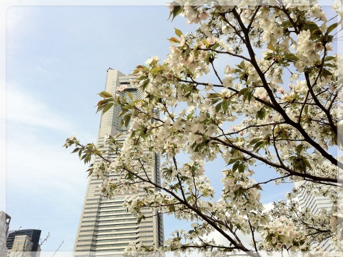 みなとみらい21 ・ワールドポーターズ付近の桜今日は泊りに来ていた孫のショッピングのお供で、みなとみらい21地区を一回りして来ました。写真は桜木町駅前からワールドポーターズへ続く「汽車道」付近で写しました。この場所にそんなに沢山の桜が有ったとは知りませんでした。桜を見たいと言っていた孫も、思いがけない場所で桜を堪能出来て大喜びでした。淡いピンクの「ソメイヨシノ」と白っぽい花びらの「大島桜」は満開、名前の知らない咲きかけの桜も何本か有りました。手入れが良いのか、どの木もとても花付きが良く、大島桜の花房は まるで「手毬」の様に真ん丸く咲いていました。天候にも恵まれたのと春休みだからでしょうか、大勢の人で賑わっていて、木の下では大勢の人がお弁当を広げていました。