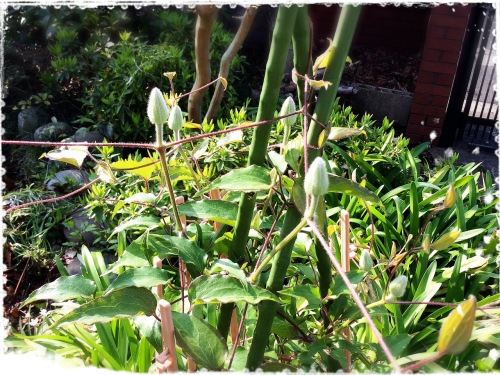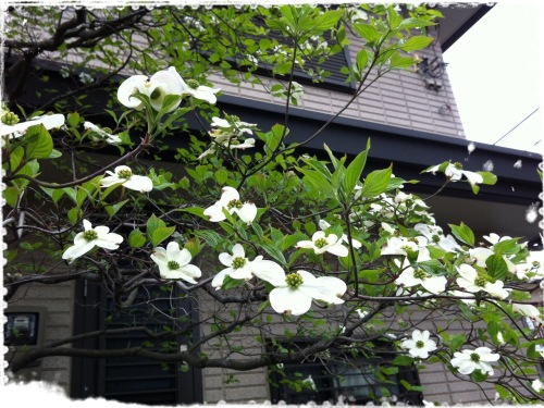 友人の家のアメリカハナミズキツタンカーメンのえんどう豆午前中、友人の家の前を通りかかったら、白い「アメリカハナミズキ」がとても綺麗に咲いていました。鬱陶しい曇り空には、白い花が映えます。ツタンカーメンのえんどう豆は次々と花が咲き、赤紫色の鞘がどんどん大きくなっています。肝心の絵の方は、なかなか思う様に捗らず、描きかけのままになっています。なんとかしなくては・・・。
