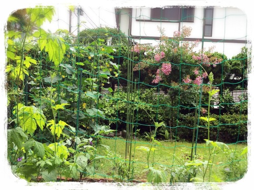 ゴーヤの蔓収穫今年、主人が植えた苗は、胡瓜と茄子が二本ずつ、甘長唐辛子が五本、激辛唐辛子が一本です。これまでに、胡瓜が25本、茄子が6本収穫出来ました。甘長唐辛子も収穫出来るようになりましたが、今年はいつも植える伏見唐辛子の苗が手に入らなかったそうで、残念ながら味がいま一つ・・・。細くて少し硬いのが難点です。今年は種から育てると、主人が種を蒔いたゴーヤの蔓が、ようやく伸びて来ました。昨日、初めて雌花が二つ咲きました。収穫が楽しみです〜♪