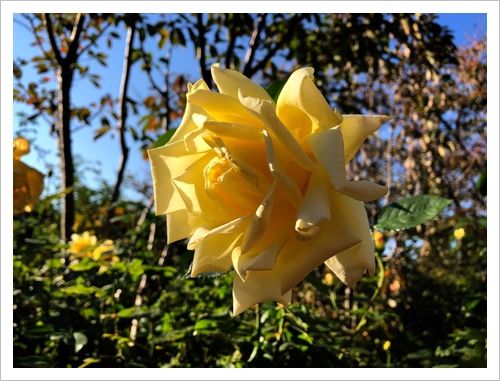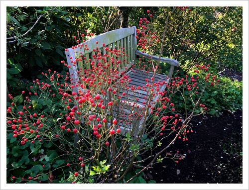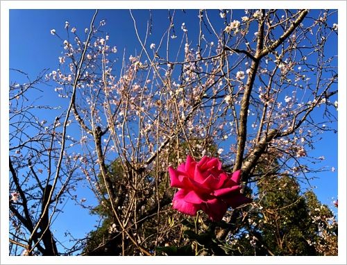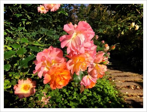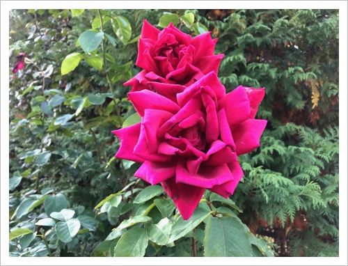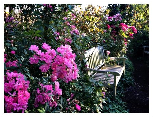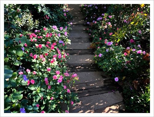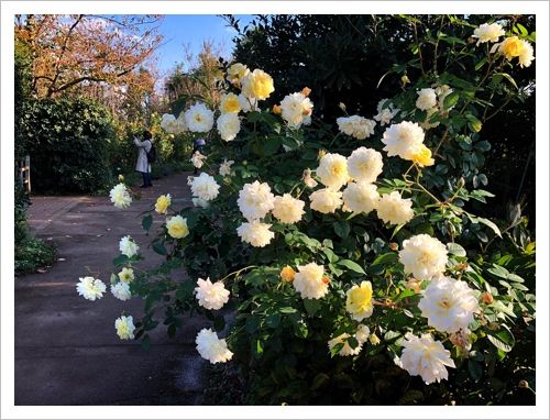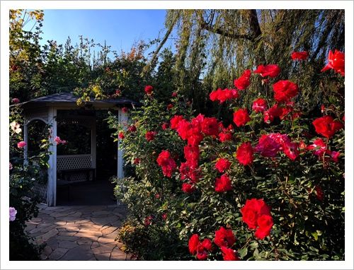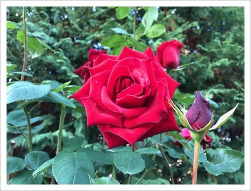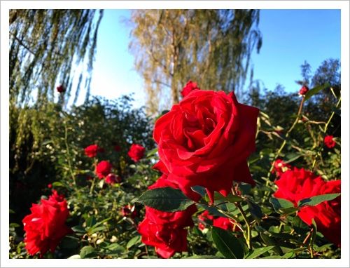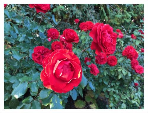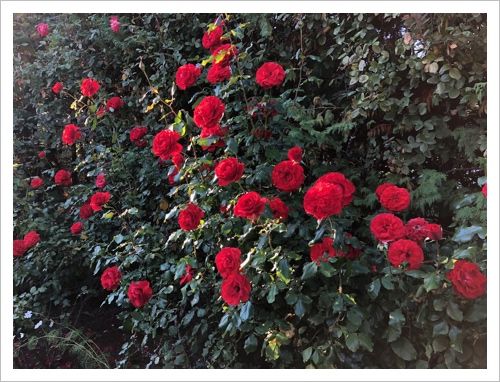 真っ赤な薔薇が、小径の両側に咲き誇ります。