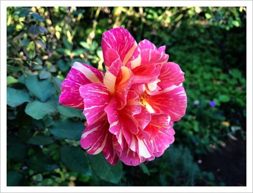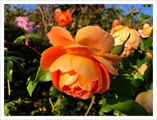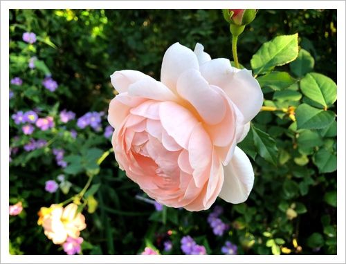 7色のバラを主役に、灌木や大型宿根草を組み合わせた