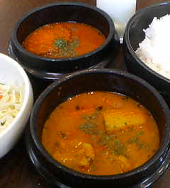 takanoさんにおすすめいただいた神保町のマンダラに行って来ました。お店の美人ウエイトレスさんにおすすめを聞いたら、「チキンバターマサラカレー(\1260)ですよ」って言うので、それを注文してみました。ここのカレーは結構辛いって聞いていたので、辛さは5段階の3にして、ラッシー(\450)も頼んでみました。でも思ったほど辛くなかったので、今度は4で、バターじゃないのを試してみようと思います。カレーはおいしいし、まだまだたくさんメニューがあるし、美人ウエイトレスさんの応対もすごく良かったので、フフフ ( ̄+ー ̄)キラーン また近いうちに来たいと思います。