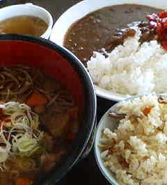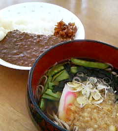 久しぶりにお休みをいただき、雪山に登ってきました。このカレーとそばセット(\1,100)は、谷川岳ロープウェイの麓のレストランで食べました。カレーはひき肉がごろごろしていて、なかなかおいしかったです。