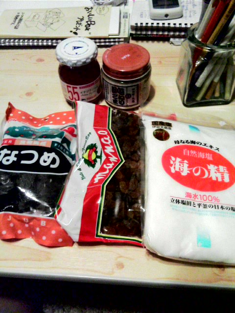 昨晩、急遽駅ビルの成城石井にて購入した品々この猛暑のせいなのか、何なのか、今年の盆休みは例年になくアヘアヘだった日本列島全域が燃えかけた10日から18日あたりは、床にいてもどこにいても汗が滝の様に体中から噴出していた。何をする気もおきずただ、水分だけはしっかり摂るようにとペットボトルをぶら下げて外出しても、向かってくる熱風に酸欠を感じ、たちくらみや吐き気に襲われた。今思えば、あれは熱中症の初期~中期の症状だったのではないだろうか、と思う。この間、図書館で或る本を読んだ。◆「不妊治療・食事と生活改善」・著者/豊田 一さん◆この本を読んで一番目からウロコだった内容が「間違いだらけの減塩食品」だった。それによると、血中の塩不足で疲労が起こるというのだ。この猛暑で汗と一緒に失われた体内の塩分は相当だろう、ということは素人でも分かる。でも私は、それにあわせて水分と一緒に塩分を補う、というあたりまえのことを怠っていた!!それで、甲斐の国の武田信玄同様に精気を失くしてしまったのであるしかし、もちろんこれは成人で常日頃あまり塩分を摂っていな人の話であって、もともと塩分を多く摂りすぎている人には当てはまらないと思う。とにかく善は急げ、と自転車をこいで食材豊富な成城石井へ向かった。なんせ私はもとも薄味志向だから。塩分はもしかして底を付いているかもしれない。伊豆大島、能登半島、有明の自然塩のミネラルが元気の鍵という。★伊豆大島産 「海の精」海水100%を購入 ■ マグネシウム、カルシウム、カリウム、葉酸、鉄、銅などを含む ■ 価格 1000円くらい (写真右端)ということで、夏ばての方~しっかり自然塩摂れてますか。今更ながらかもしれないですが、ちょっと振り返ってみるのも良いかもしれませんよ私はコレを糖尿の疑いが出た母に贈ろうと思う・・♪その他★ オーストラリア産 「サルタナレーズン」 500円くらい ■ 善玉コルステロールを上げるため★ 国産 九鬼産業株式会社 「白純練りごま」 300円くらい ■ ビタミンE 物凄い濃厚でハチミツとの相性ばっちり!ゴマダレもOK玄米酢と合わせて★ 中国産(!)なつめ ■ ちょっと歯ごたえはイマイチ。。。隣のお姉さんにつられて買いました。食物繊維。