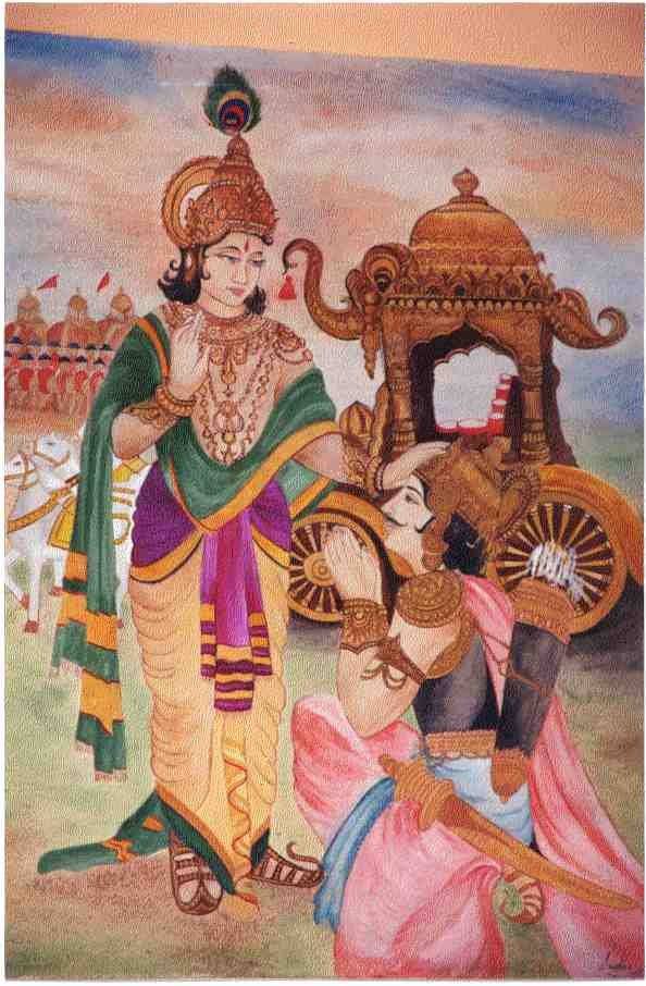 『ナーラダ・バクティ・スートラ』 第65節 主に全ての行為を捧げて、欲望と怒り、自負心などは、全て主との関係においてのみ抱くべきである (要旨解説) 物質のラジャスの影響により欲望(カーマ)が生じ、それはタマスの顕れである怒り(クローダ)へと変化する。この欲望とは本来の主への愛がラジャスに触れ倒錯したものである。この欲望を主への愛に変えたなら、全てのことをクリシュナのためにしたなら、欲望も怒りも神聖化される。『バガヴァッド・ギーター』では、主がアルジュナに私を満足させるために暴力を使いなさいと指示された。欲望も怒りも自負心も、それをクリシュナ意識で使用すれば、私たちの敵ではなく友になる。神との関わりのなかで、善悪という二元性がなくなり絶対という平安境(シャンティ)に入ると『バガヴァッドギーター』第5章12節でも説明されている。「身内と戦って殺しあうことは、道義に反することではないでしょうか?」 「アルジュナよ、私のためにすることには善悪という物質的な二元性は伴わない。なぜなら私は善悪のない絶対的な対象だからである。」しかし、この真理を他者への都合のいい攻撃の後ろ盾にしてはいけない。なぜならクリシュナが殺せと言っているのはアルジュナ自身の心の中にいる敵(ラジャス)を指しているからである。それがグルパランパラーで得られる智慧と達観すべきである。