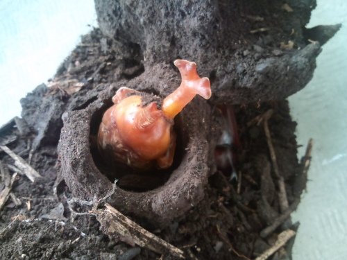 夏の昆虫のヒーローと言えば、カブトムシやクワガタでしょう!これ、カブトムシのさなぎです。図鑑でしか見たことないという声を多数聞いたので息子が張り切って学校に持っていきました!「おっ!」とびっくりしたこと、めずらしいこと、いいな!と思ったことは仲間と共有したいもの。うちのやんちゃ坊主、そんな私のDNAをしっかり受け継いでいるようです。最近ブログ、さっぱりご無沙汰だったのでこれからはupします。バランスボールエクササイズ、ヨガクラスの開催日などHPに載せています。http://www.ab.auone-net.jp/~tilde367/index.html気になる方は、のぞいてくださいね~それから、近日中に、stonewearの展示即売会を開催予定です。詳しいご案内は、写真つきで後程・・・