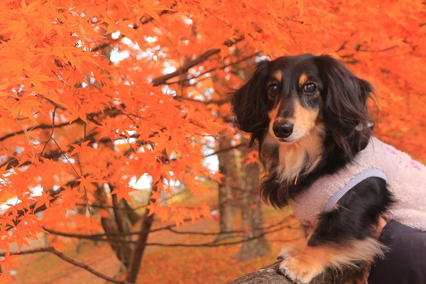 紅葉真っ盛りの山中湖へ 結ちゃんとやってきました 見上げて綺麗、足…