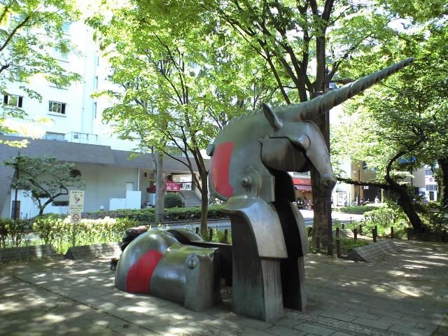 目の前の春日通りを渡ってすぐ近くにあるのが、窪町東公園。そこには、童話の世界から飛び出たような彫刻が並んでいます。