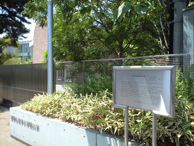 解説板の後ろは現在、仏教関係の大学院大学のキャンパス。この広大な土地は、かつてケイキさんのお屋敷だったのですか。