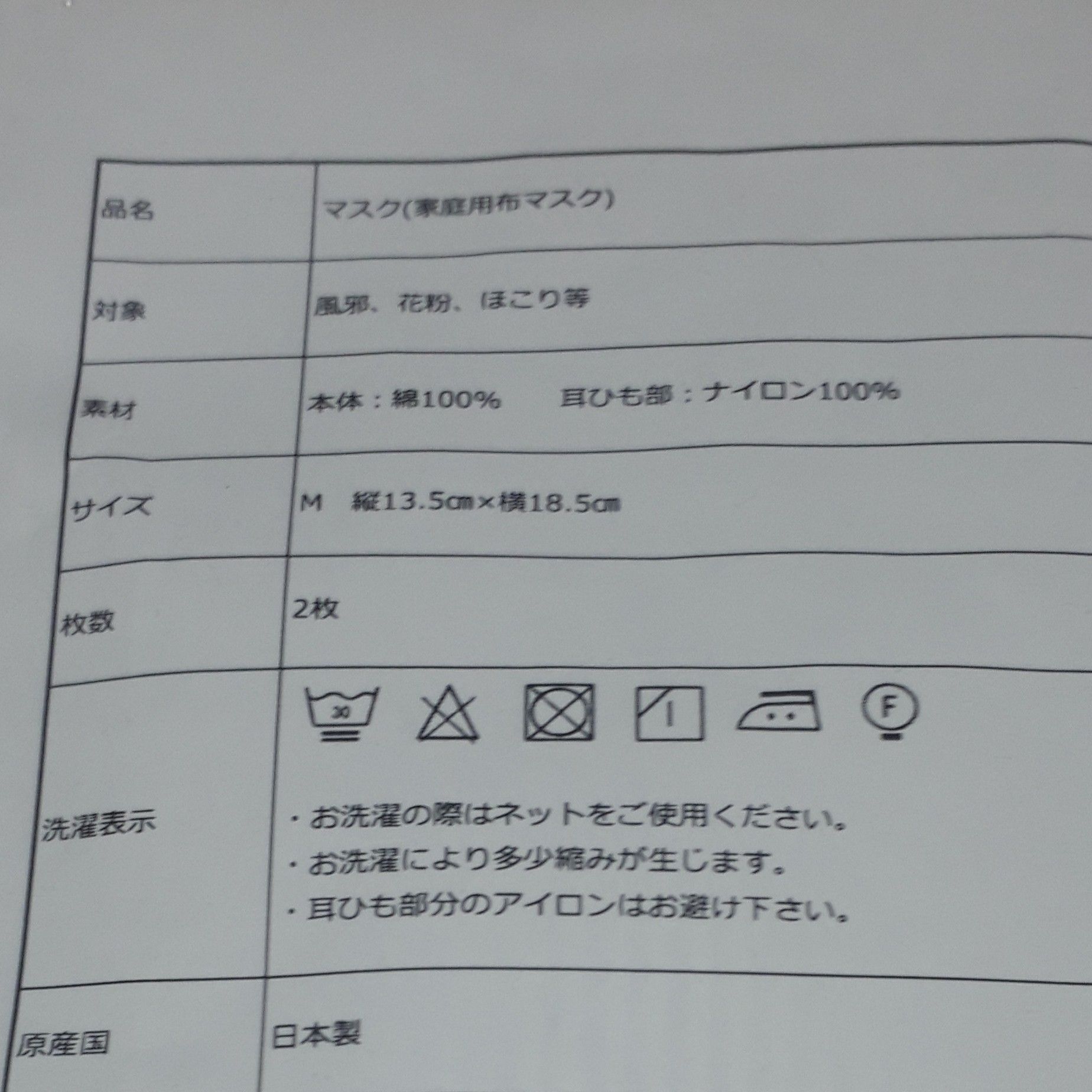 ジョンブルの布マスク
