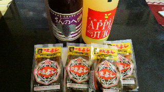 大阪経由で青森の味覚が届いた。 葡萄のジュースと林檎のジュース、あとは謎の漬物。 葡萄は絞ってそのまま詰めました的な野太い味。 でも美味しいので、チビさん達もゴクゴク飲んで、あっという間に終了。 林檎も半端なく甘くて濃厚。 謎の漬物は、松前漬けと山形の「だし」のあいだを取ったようなもの。 昆布とスルメと数の子を合わせれば、不味いはずはなく、まずは鰻丼のお供に出動。 美味しく頂いております。 まだまだ全国、いろんな美味しい食べ物があるなー、と感心した1日。