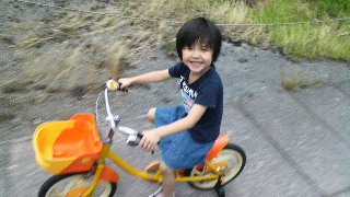 今日は仕事も早く終わったので、ホームセンターで自転車の整備の道具を買い、先日買った自転車を走れる状態にしてみた。 その後、試運転がてら上チビさんと近所のスーパーまで買い物に。 最初はおっかなびっくりだったけど、すぐ慣れて快調に運転している様子。 楽しそうに乗っている姿を見ると、自分の子供が自転車に自分一人で乗れるようになったんだなぁ、大きくなったんだなぁ、と少し感慨に浸ってみたり。 帰りは雨にあったりしたものの、無事に買い物も終了。 上チビさんにとっては、とても嬉しい1日だったみたいだ。 さて次は、下チビさん用に、奥さんの実家に置いてあるアンパンマンの三輪車を取ってこないと。
