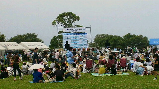 なんとかかんとか、車を駐車場に入れて会場へ。 蒸し暑さが半端ない会場で芝生に座って待つ。 途中に通ってきた博物館もすんごい人人人。 博物館は博物館で周年記念イベントをやっているそうで。 とにかく凄いことになっているのは、間違いのないところ。 とか思っている内に、さかなクン登場。 テレビで見てるのと、全くおんなじ。 ここまでぶれない良い人も珍しい。 おもに琵琶湖の魚に関するネタで、なかなか楽しかったが、チビさん達には少し難しかったみたいで、最後はちょっと退屈モード。 終わりがけには雨も降ってきたので、終了と同時に会場を後に。 奥さんは生のさかなクンを見ることが出来てかなり嬉しかった模様。 帰りはかっぱ寿司に寄り、リサイクルショップで捨て値で売っていた、しまじろうの自転車を購入。 上チビさんは、初自転車なので、テンションMAXに。 タイヤの空気やら、補助輪やら鍵やら、今週中に整備して、週末には乗れるようにせねば。 自分は前から気になっていたイワタニの「あっとスライス」がお安く売っていたのを買い、これまたかなり興奮気味。 帰りがけに職場の人より電話があり、今年の梅を貰いに行く。 今年は炊飯器で作る梅シロップに挑戦予定。 なかなか忙しいなー。