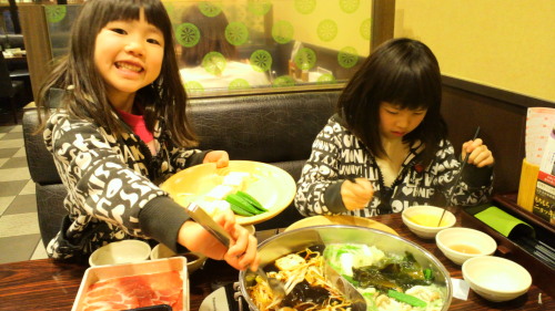 クリスマス。日本人ならしゃぶしゃぶよねー。外食続きの我が家に蔓延する野菜不足。このままでは大航海時代の船乗りのように壊血病になって全滅してしまう。これを防ぐためには、しゃぶしゃぶしか方法がない。という訳で、9月のオープンからずっと気になっていたお店に乗り込む。揃ってマジもんの野菜不足だったので、指令を出しつつ自ら頑張って野菜をとる。チビさん達はアク取りや、つくねを切り分けての投入なんかのちょっとした作業が楽しい模様。3人揃って、これでもかと食べる。結局ご飯に行きつくまでにお腹がふくれる。蟹の炊き込みご飯、食べたかった…チビさん達が思い思いのかき氷を作って楽しむ横で、力尽きる自分。死ぬほど暖まったから良しとしようか。その後は向かいの平和堂へ。いつものごとくヴィレッジ・ヴァンガードで買い物をして、ゲーセンで少し遊んで、玩具コーナーで一休み。最近やつらも妖怪ウォッチに興味を抱いてきやがった。金がかかるから上手いこと誤魔化していたのに、そろそろ逃げきれなくなってきたかもしれない。500円でキーホルダー3つ取れた。これで許してもらうことにしよう。今日の格言「十分に熱したオクラは凶器」