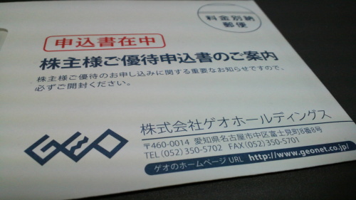 先日当たったIPOを無事初値で売却。手数料等を考えると、利はだいたい80弱ってとこか。なんとかピラピラした暖簾の所で借りる、レンタルビデオ代くらいにはなりそうだ。明日は金曜日。優待の手続きもしなきゃいかんし、久しぶりにGEOにでも行ってみようか。