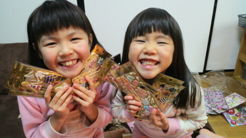 明日明後日はごちゃごちゃと用事がありそうなので、以前注文したクリスマスプレゼントを子供たちに渡す。楽天の雑貨屋で頼んだシールメガ盛り袋と、着せ替えシールのメガ盛り袋。寝る準備までさせた後に渡すと、喜びの金切り声。さっそくドラフト会議が開かれて、少しの小競り合いの後に無事2等分される。安っすいプレゼントだけど、これが一番喜ぶからまあいいやって感じ。自分には、そろそろブームが下火になってきたなめこグッズの福袋。えらく興奮してたので、ちゃんと寝るか心配だったけど、どうやら無事に寝た模様。さて、風呂にでも入ってくるか。