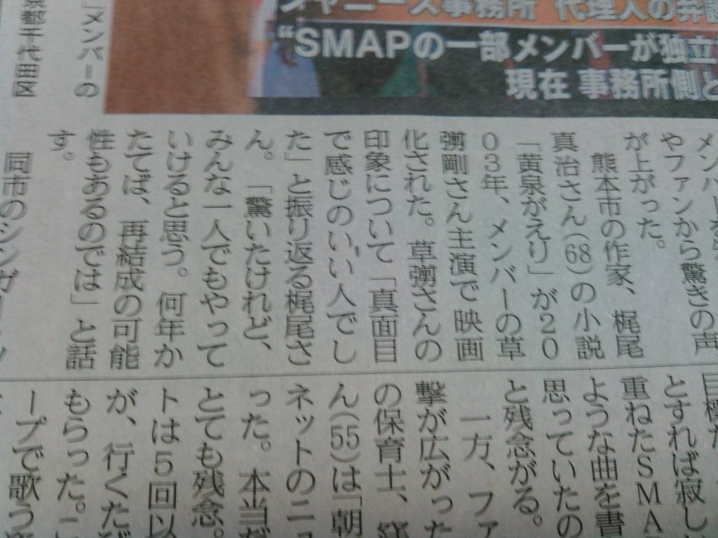新聞はとってるけど、1度も読んだことが無い。チラシと販売店さんからの粗品等が十二分に良いので続けているけど、本体は子供の習字に使うくらい。「もったいないかな?」と思ったりもしたけど、これを真面目に読むのはやはりおめでたい人種。これを見ると、新聞記者とヤブ医者ってすごく似ているなあと思う。スタートする前に「こうあるべし」の方針で決められて、物事を自分の都合のいいように変換していく。こういう人たちに罪悪感なんてものは存在しないから、関わったらとっとと逃げ出すのが吉。梶尾真治@「猫の惑星」PHP研究所 @kajioshinji3223 1月13日今、新聞の文化部さんから、なに間違ったのか「SMAP の解散にニュース聞かれていかがでしたか?」と。よりによって何故に私に。ぷっと吹き出す。「全員生きてるんだからいいじゃないですか。何十年かして同窓会ツアーするとき追っかければ。ボウイの方がショックですよ」と答えました。 ↓梶尾真治@「猫の惑星」PHP研究所 @kajioshinji3223 15時間15時間前昨日のコメントは新聞変換されてこのように掲載されるという例。