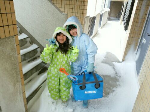 戌年が鼠年を誘い、雪遊び。 温かいコーンスープの用意でもしとこうかね。