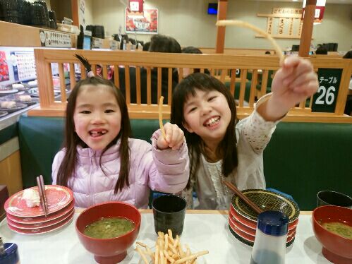 夜は恒例になりつつある「はま寿司」。 正直旅館の晩ご飯に、すんごく後ろ髪引かれていたが、お寿司を食べて思うのは、あのボリュームを食い切るのはやっぱり無理。 なので、たぶんコレが正解。 正解だけど、なんだか悲しい。 それはそれでチビ達は絶好調。 下チビは相変わらずのサーモン野郎になって、上チビはアイスクリームを旨そうに食べている。 最後はみんなでケーキをつついて。 そんな誕生日のお食事。 まあ、今のうちはこんなもんで良いんではないかな、と思う。