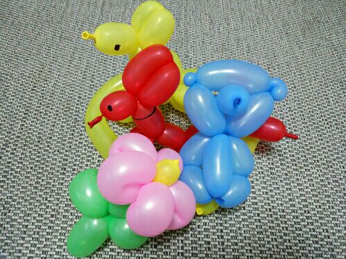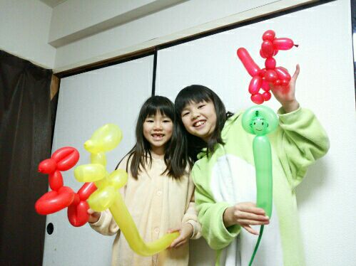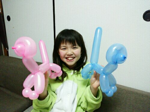 一日でなかなかの進化を遂げるバルーンアート。 勉強もこの調子でお願いしたい…。