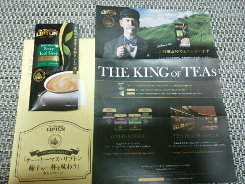 軽いジャブのような懸賞が当たる。 あっさりした中にも、飲み応えはしっりとあるミルクティー。 上チビが美味しく飲んで終了。