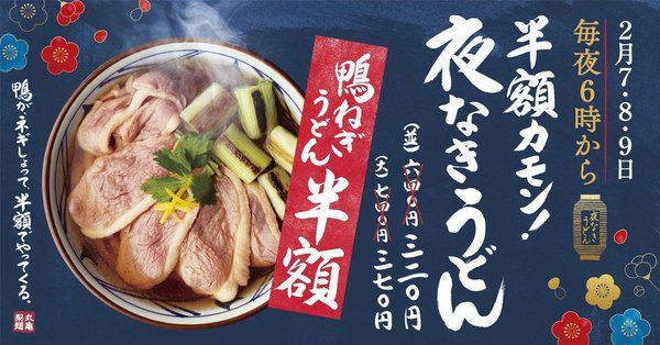 丸亀製麺の新商品「鴨ねぎうどん」 2月7日から9日の3日間限定の出血大サービスまさかの半額でござるよ要チェケラ(´・ω・`)b