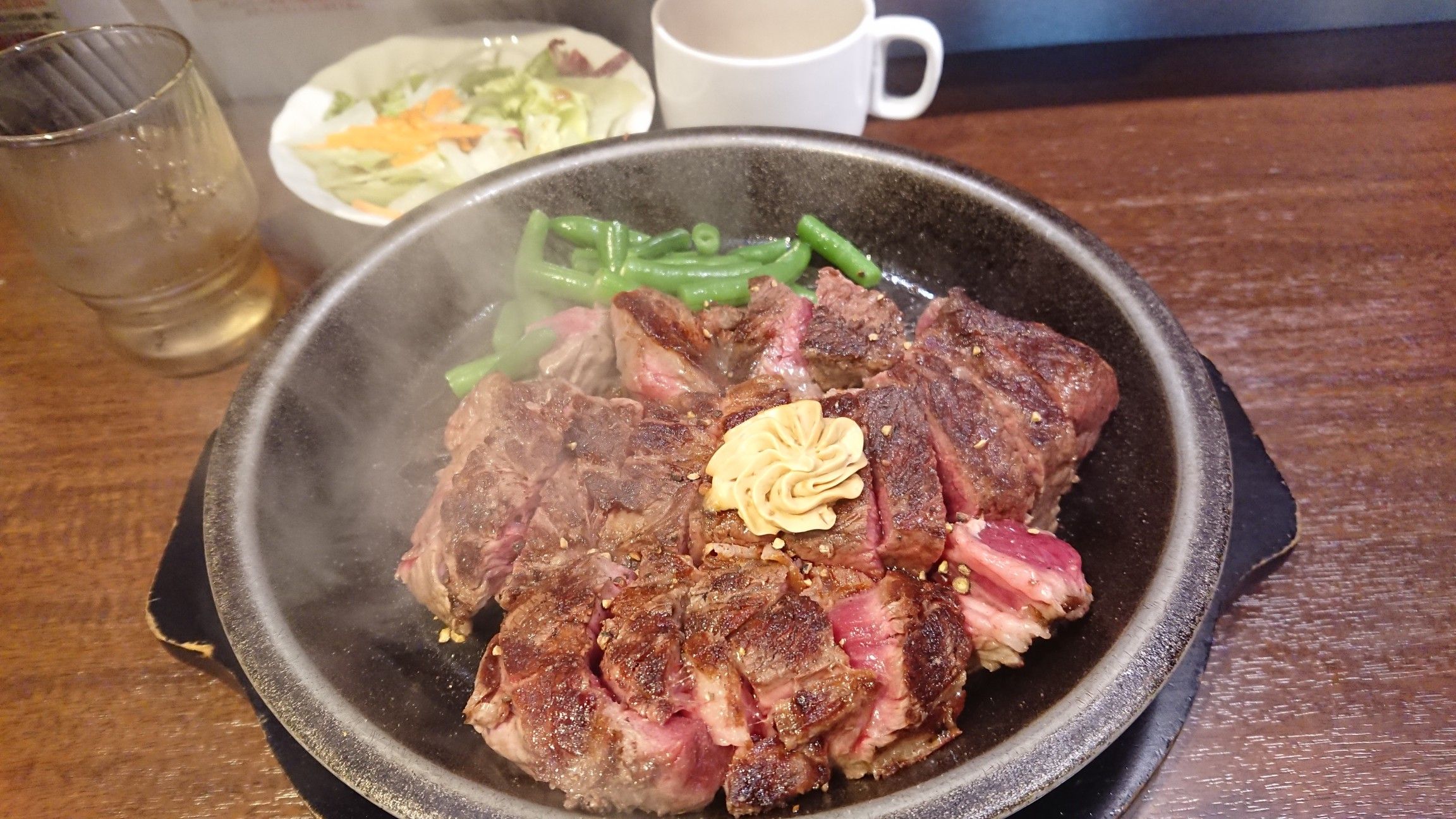 あまりに肉が食べたすぎてチビ達が起きる前に、こそこそと1人で訪ねるステーキガスト🥩久しぶりのサラダバーパスタもお目見えしたりで、少し進化している模様\(´ω` )/昨日の台風の話なんかを店員さんとしながらまったりとした時間をすごす(´ω` )