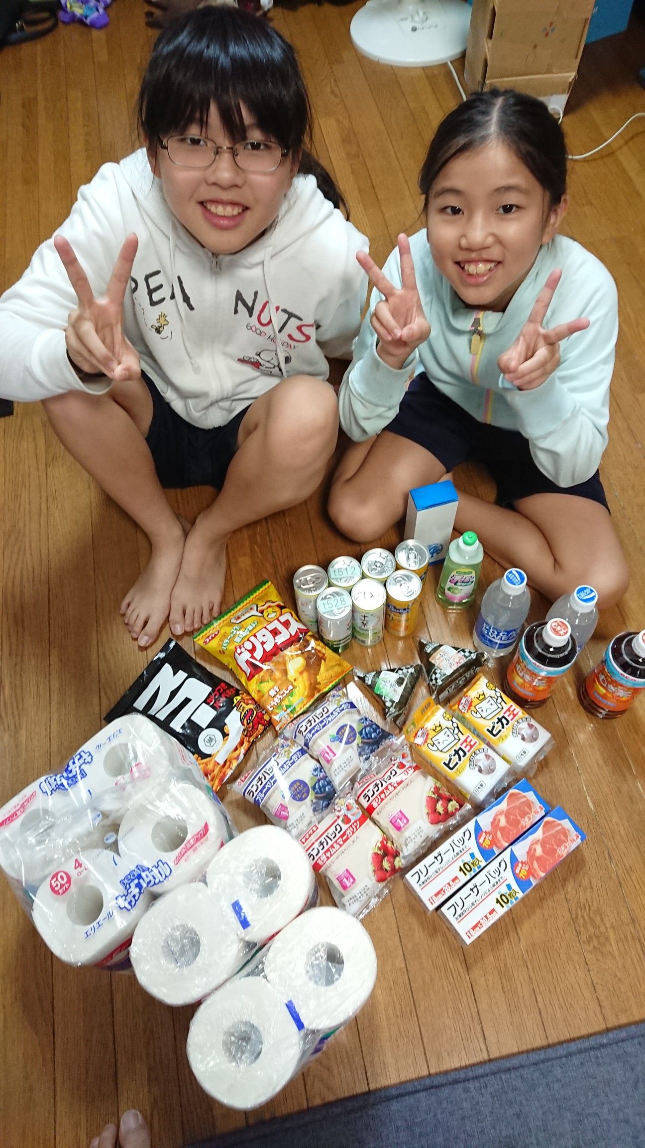 日曜日 チビさん達は住民運動会へ 僕は荒れた家のお掃除、最終段階 帰ってきたチビさん達 とても運動会帰りとは思えない戦利品を 抱えて帰宅 キッチンペーパーはとてもありがたい(´ω` )