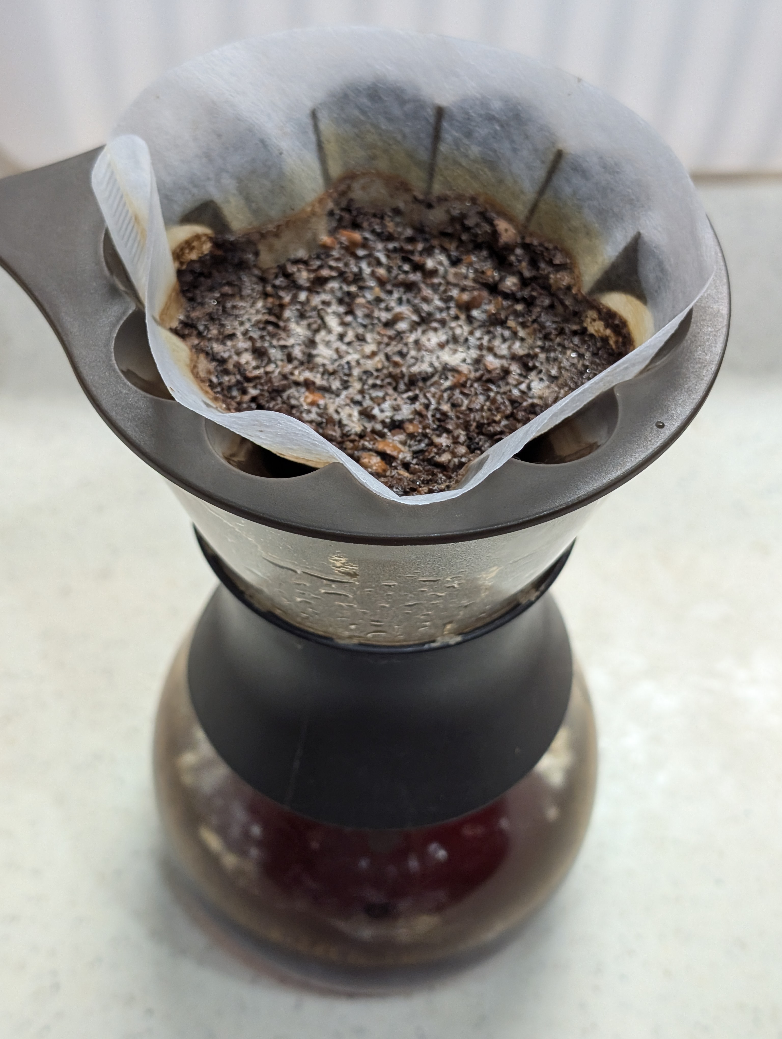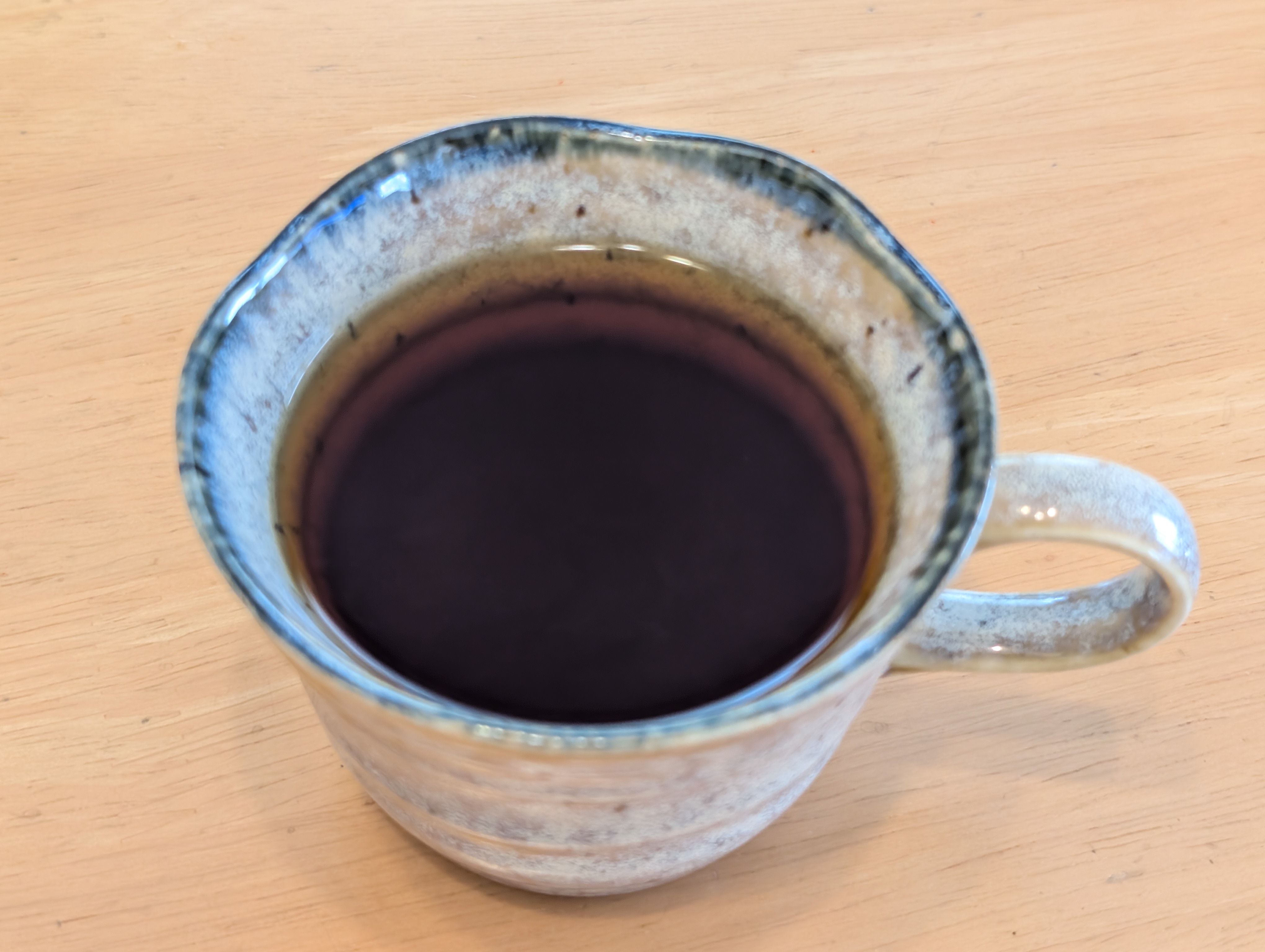 豆の品種もあるけど、粗めの挽き加減かな。あと焙煎のムラも影響していそうです。ちょっとコーヒー薄いし。なかなか難しいですね。