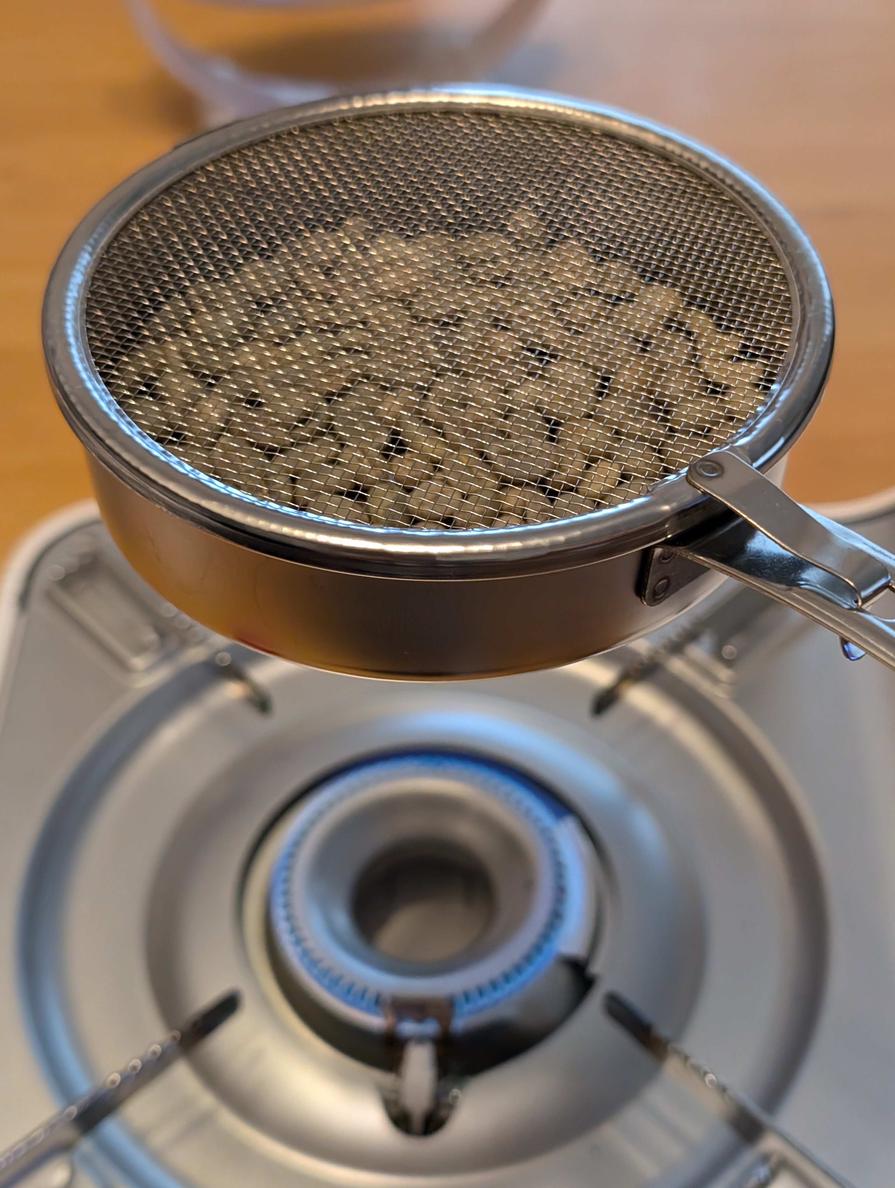 豆がパチパチと音を立て始めたら今回は中煎り目標なのでここで終了です。