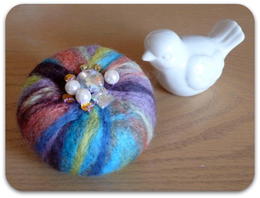 こんにちは~今日も東京はイイお天気ですが北海道では雪が積もっているとか…!?みなさん、体調崩さないよう気をつけてくださいね~*私は、風邪なのかあまりにも人と会話をしていなかったから声帯が衰えてるのか最近、ノドがガラガラで声が若干かすれてますみなさん、気をつけて…(ん?私だけですね)そんなわけでこれじゃあマズイだろーってことで人と接して来ました。笑。大学時代の友人2人と渋谷へまずは 女子会っぽく(?)オシャレなお店でランチシャンパン付のコースでしたが私はジュースで我慢。フォアグラ丼とかフォンダンショコラとか美味しかった~(えーっと、写真はありません。ゴメンナサイ。)そして腹ごなしに裏原までテクテク歩いてくまじゃわさんとゆー羊毛フェルトの作家さんのワークショップに参加してきました~1時間半あったんだけど本当に あっとゆーまで 写真を撮る余裕も無くえーー、まだ納得いかなーい!と思いつつとりあえず仕上げてきました(言い訳)で、作ってきたのがコレダンナに見せたらイソギンチャクって言われたよこの、手前のね、水色がちゃんと縞になってないとこやりなおしたーい!!!裏の方がキレイじゃない…?いや、なんで こっちを表にしなかったんだろー??そして、頭につけるにはデカイよね…。いろいろ思うところはありますがランチ も 友達とのおしゃべり も初 羊毛フェルト & 初 ワークショップ もとっても楽しくて 大満足な一日でした羊毛フェルトの楽しさを知ってしまったのでちょっと ヤル気まんまんですeriちゃんが セリアさんにニードル付キットが売ってるって教えてくれたので今度行ったらgetしてきてイソギンチャクも もっとチクチクして小さくして 頭につけるんだ!と意気込んでいたりしますこの本も気になる。。ランキングに参加しています。にほんブログ村↑ポチっとお願いします♪-----------------------------------------おねがい● 迷惑コメント対策のため「http://」を禁止ワードに設定しています。URLを入力して頂く際は 「 http:// の後から 」 でお願いします。● 過去の日記へのコメントも 「 最新の日記 」 へお願いします♪(見逃し予防のため ご協力ください^^)