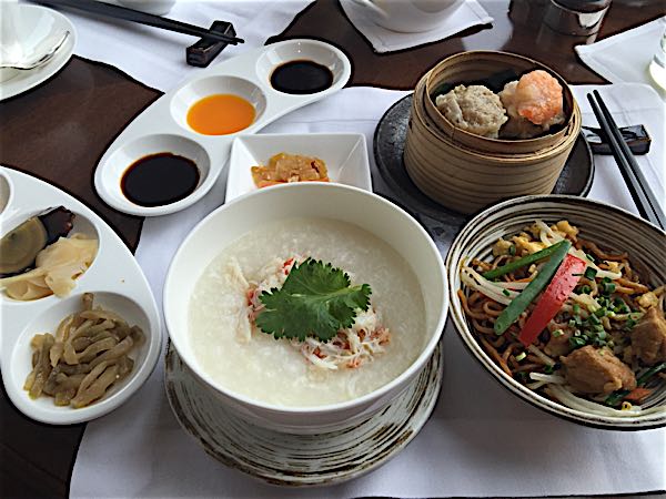 昨日はブレックファーストミーティング @シャングリラロビー たまにはおいしかった! 蟹のおかゆと、3口くらいで食べられる 焼きそば。しゅうまい 香港式朝食だよね❤️