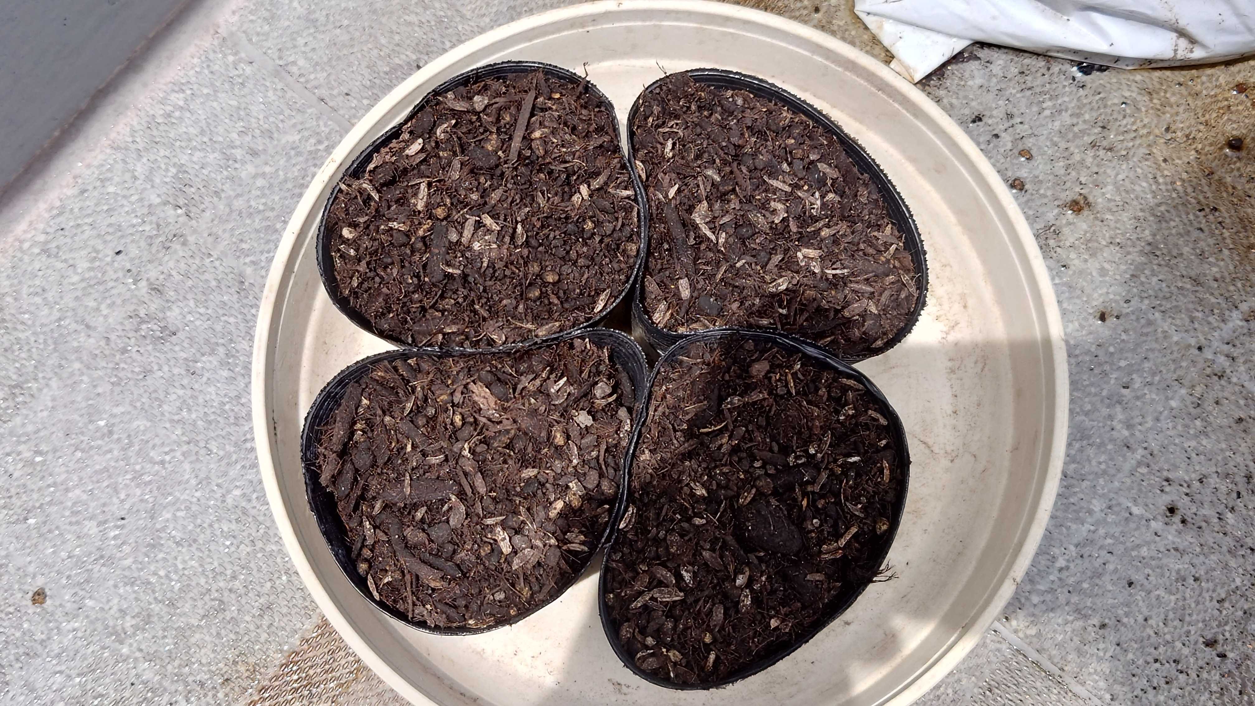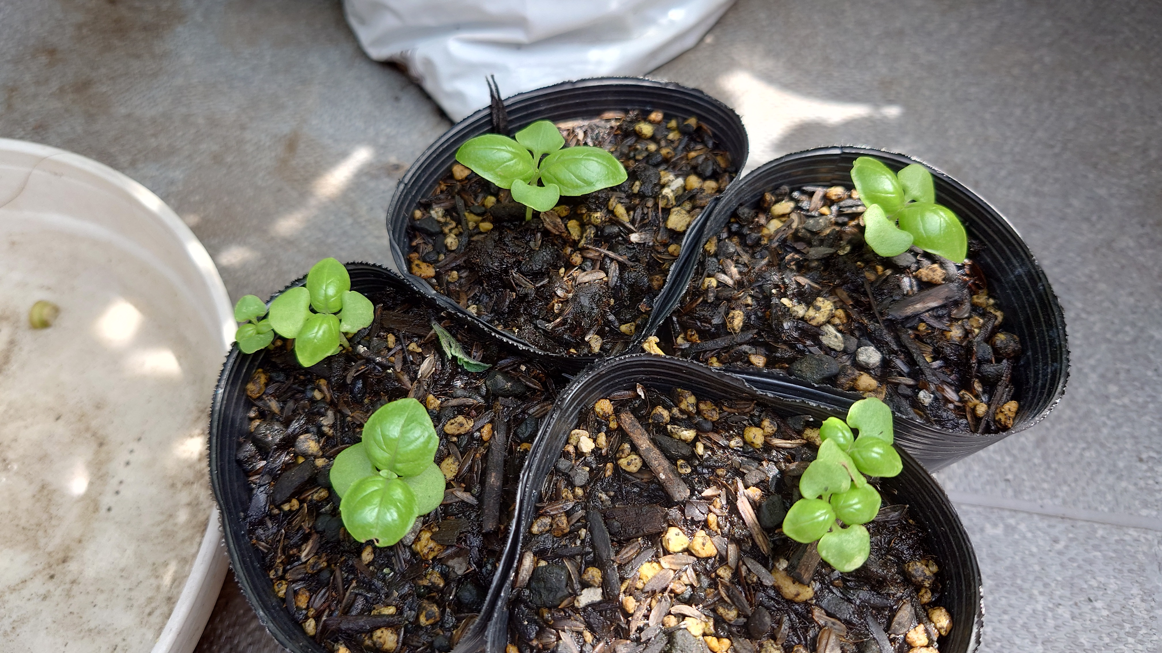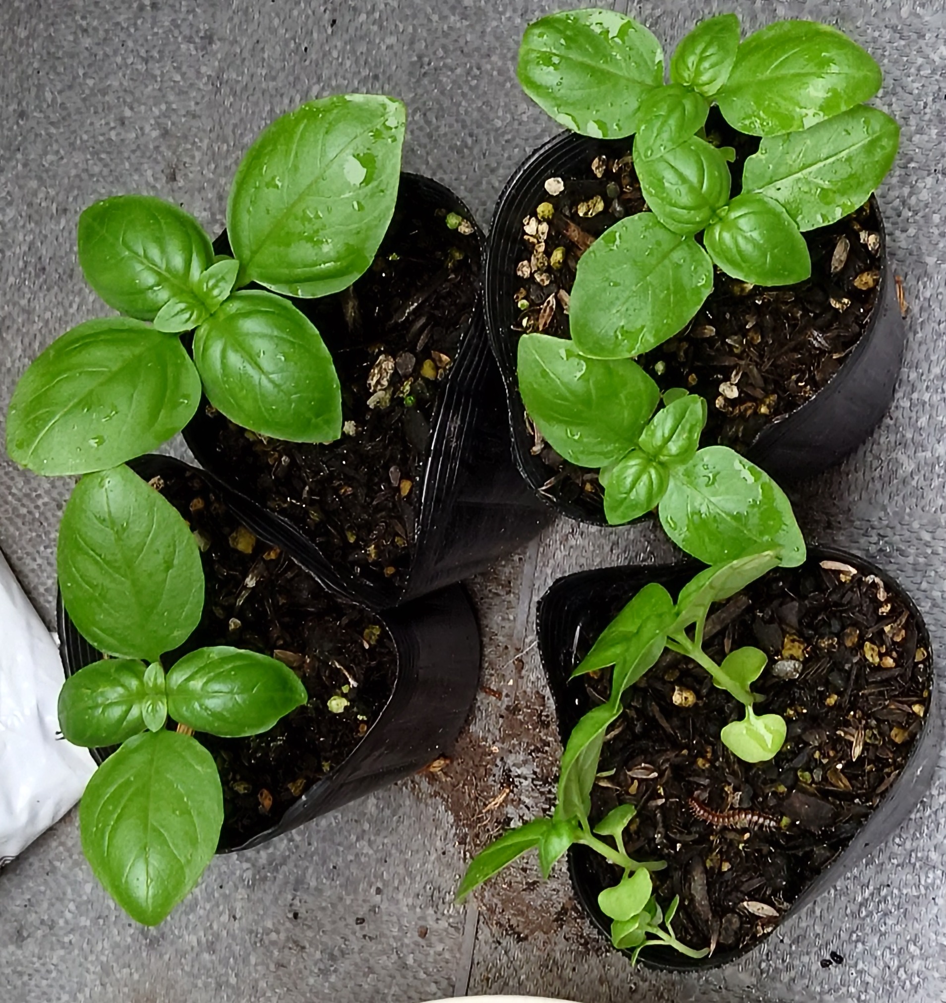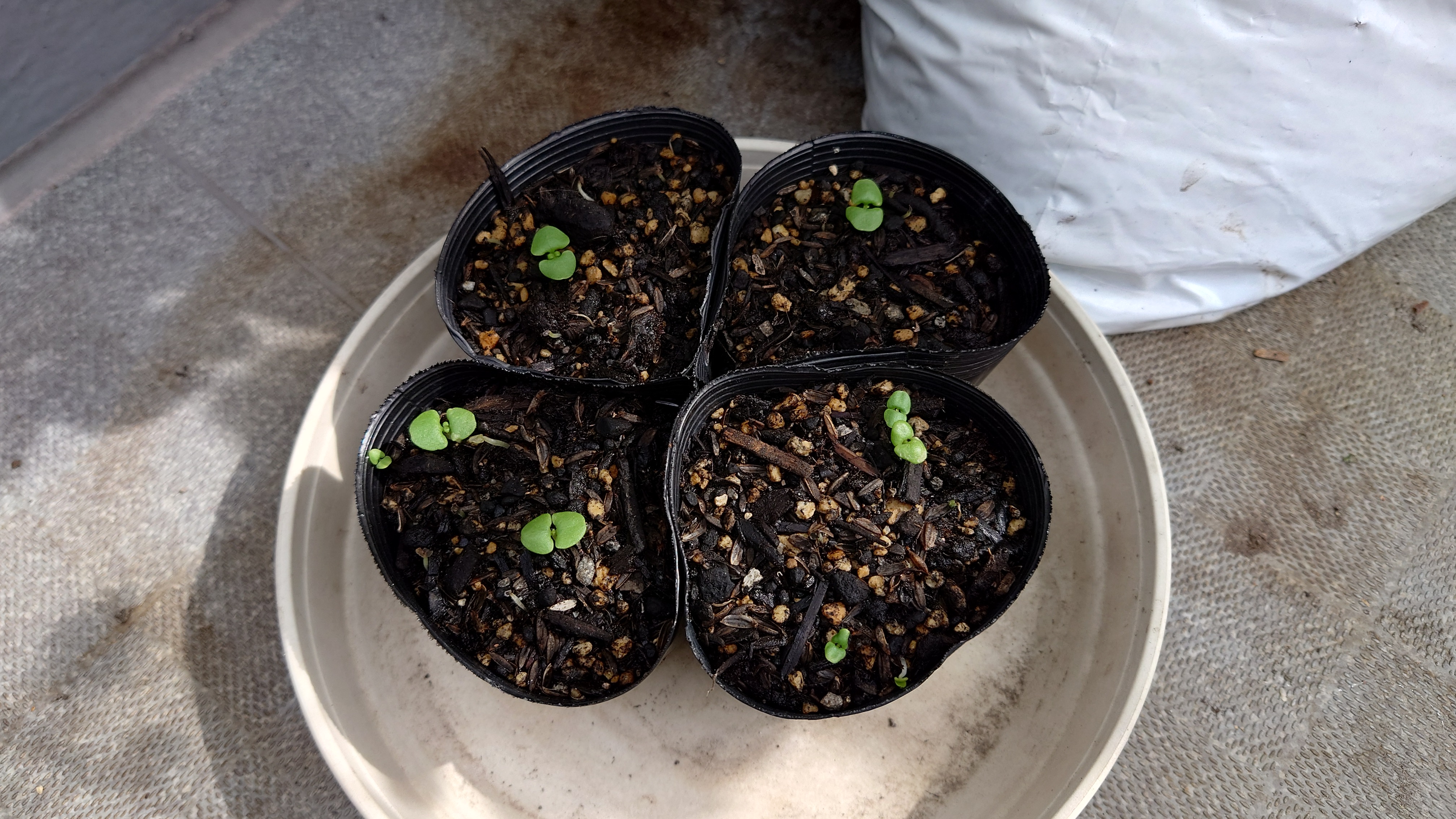 育ってきたので、アブラムシよけにトマトの鉢に植えないと。