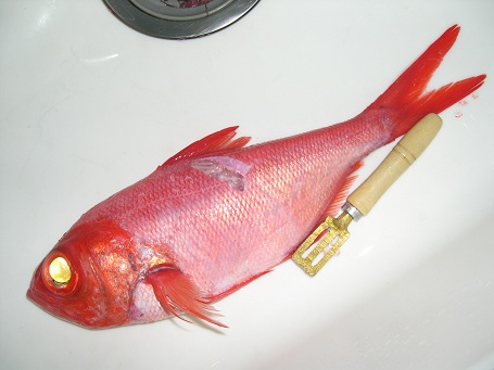 今年初めてのキンメダイ漁に出かけた。おおじけの中、船団が太平洋へ向かっていく。今日は初漁ということで親方も同行した。兄弟2人とじぃじとの親子船である。風がど吹(ぶ)いて一本釣りの糸が絡む。(方言で「すごく」という意味の時は「ど」をつけます)このような時は人道作戦が有効である。独りで船に乗っている漁師がいる中で3人乗船している我が愛船は重宝がられた。絡む糸を次々ほのき、水揚げと同時に鮮魚を氷水につける。大きなうねりの中で小さな船団が戦っている。途中2m以上のサットーも捕えた。今日は幸先よい大漁の1日であった。さて、傷になったキンメダイをいただいた。「オイ!これを味噌漬けにしてくれ!」親方は言うなり、すぐに明日の出港に向けて準備作業へ出掛けて行った。わたしは独りでキンメダイと格闘する。こちらは鱗を取ったところ。切り身にしてから塩を振り、1時間程置いて調味料を合わせた味噌につける。わたし流の味である。正月中にご近所でお葬式があった。95歳のおばあさんである。亡くなる前日まで乳母車を引いて散歩に出ていた。“ぴんぴんころり”とはまさにこういうことだろう。好き嫌いなく何でも好んで食べていたそうだ。その中でも生活水にはこだわりを持っていた。わたしも毎日摂取する水や食べ物をありがたくいただきたい。