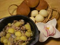 ジャガイモのポルトガル風蒸し煮、前日はベーコンの塩分を考えずハーブソルトを加えたので少々しょっぱい蒸し煮になりました。ベーコンを豚肉に変えて、またまた飲めるのに飲めない白ワインの蒸気に酔いながら、、、ちょっと白ワイン多めに加えて作りました。使用するジャガイモの種類で迷った☆ボリジ、出島よりホクホク黄色い食べなれている『北あかり』に軍配が!初『出島』の出番はいつ?そして二種類のジャガイモと一緒に帰宅したのが『酒粕カステラ』 地養卵に豆乳、酒粕の入ったカステラやパン、お漬物、柚子・・・目的は輸入食材なのだけれどお酒屋さん、そして教室の材料を買いに何か所のお店に寄り、計8カ所、あっちのあっち方向のに行ったついでのついでは☆ボリジもも疲れ果てます。
