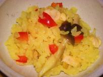 またまた、レシピ発信元はてんしさまの炊き込みご飯とてんしさまのバーニャカウダ 旨・旨でした♪ てんしさまのブログのご飯に比べたらターメリック=ウコンパワーの黄色が足りないようですがこ・れ・は~酒飲みでなくとも頂きたいご飯です。なんとなく紅葉の山を思わせるようなご飯。 今日は甥っ子の子守日、勿論☆ボリジ亭は、てんしさまのお蔭でOPEN。ニンニクを牛乳で軟らかく煮て、アンチョビとオリーブ油で作ったバーニャカウダ、野菜、特にクセのあるセロリが美味しく頂けました。そして何より並べた野菜が野菜時計のように見えると教えたら野菜苦手な甥っ子も食べてくれてました。朝もウコンパワーのご飯、そして夕食にも・・・これで肝臓強化いつでもなんでも こーい!とはいきませんが美味しいものって元気になりますね♪