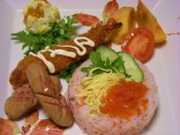 ネームプレートを首に下げさせて、テナントへの納品に付き合わせたら、なんか働く人的な感覚を持って頼もしかった甥っ子でした。帰りにスーパーで買い物、お子ちゃまカートに乗りたかったようですが、店内を車型のカートを手押しして行き来するのって結構大変なんで却下。 『なんで、こういうお皿なの?』そういえば、☆ボリジ亭でワンプレートは珍しいかも~! 一部手抜きではございますが『旨い~』のポーズ。作るきっかけはてんしさまの創作おにぎり シャケとイクラの・・・は、てんしさまのレシピですから~旨・旨なんですよ