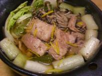 タジン鍋を買おうか迷ってる☆ボリジです。いつもお邪魔させて貰ってますブログのおひとつ『ばーさんがじーさんに作る食卓』の素敵なご夫婦の美味ししい食卓にありましたメニュー詳しくはこちらレモンの塩漬けも無いし~タジン鍋も無い、乾燥コリアンダーしかない、ないない尽くしではありますがマネしてみました。鶏レバーと砂肝、大きめにカットした鶏肉に冷凍庫にあった鶏手羽先をパセリ、しょうが、ニンニク、乾燥コリアンダー、塩、コショウ、オリーブ油でマリネしている時から、なにやら美味しい異国の香りが~ レバー系は苦手ではない我が家ですが肉類はソテーして、いつもの直火土鍋に蕪と金時人参と共に入れ、レモンの塩漬けなどございませんので数時間塩塗しにしたレモン、春雨をのせて加熱しました。もともと作家さんの拘りで蓋の無い土鍋なので手持ちの鍋の蓋を被せるも隙間が・・・う~ん、もう鍋蓋の隙間からもれる香りに誘われて、ついつい久々アルコールを少々頂きました。 大きめにカットしたつもりの蕪、そして金時ニンジンがホカホカのフワフワで少しでも動かすと崩れてしまうのですが、その野菜の美味しさに!意外にも親父も好む味でして、ご飯にのせて味のしみた春雨を食べてました。で~野菜室の整理も兼ねた粕汁はマミー作。野菜たっぷり。 来客というか・・・なので、しゃぶしゃぶ用にカットされてあった脂ののったブリ、お刺身でも充分いけるとのことでしたので、縮んでは勿体ないとお寿司と散らし寿司になって登場しました