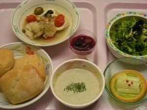 いつもご訪問、コメントありがとうございます年に四回の特別メニューは回数が増えたようで長~~~い宿泊の中四回目のチャンス到来。アレルギーは仕方ありませんが嗜好で禁食にしていた食材を幾つか戻したので、予告のメニューから幾つ出るか過去の事例からして悔しくならないように美味しい物を隠し持ってましたがぁ~出番は無く全てのメニューが揃いを翌日の朝食用に残し、隠し持っていたテイクアウトしてあったアレ(後日 アップ)の賞味期限を優先して頂きました庄内といえば冬の味覚 寒鱈汁が有名、寒鱈のアクアパッツアは二色のオリーブにケイパーまで入って田舎の病院食とは思えない一品。ゴボウのポタージュは繊維質たっぷりでクリーミーさが足りないのはカロリー等もあるからでしょう庄内の寒鱈汁のトッピングに使われる岩海苔と水菜のサラダには縁起物でもある浅葱、コチラも庄内の砂地で取れる食材。葱のオレンジマリネのピンクペッパーがとは思えない お洒落なトッピング、よく 転がらず ご無事で。また後日レシピ集が出来ると思いますが、隠し持っていたアレも美味しかったぁ~
