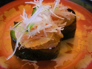 いつもご訪問、コメントありがとうございます年末に外出ついでに、遠回りなんですが寄らずにいられなくて ついつい花ワサビの軍艦巻きは欠かさんない。花ワサビだけ譲って~と毎回言ってみるも、作り方のコツだけ教えて貰った。やっぱり ふすべるんですよne特大ヤリイカ、広げるとスンゴイ大きく、シャリは2個隠れています。お隣さんが興味を示され何食ってるのかとやっぱり お寿司は左手だけでも食べられるから左利きを目指しているボリジには最適最近 右手は諦めかけてるというか悔しいけど疲れた。左利きの練習にはお寿司が向いているようです。年明け最初の外出、まさか寿司食ってきた後かとマミー、いえいえ年末に~スマホから楽天写真館へのアップロードが12月の始めに終了してからはコンデジで撮り貯めて外出の際にから写真館にアップロードまさかぁ~食ってきたとマミーに問われましたが、お寿司は年末に収納済みでして外出帰宅したら冷凍して貰ってた松茸に ひと手間かけて炊き込をだという松茸ご飯でした。初めて漬けたという大根の焼酎漬も花わさび「本わさび花芽の醤油漬」価格:1,365円(税込、送料別)