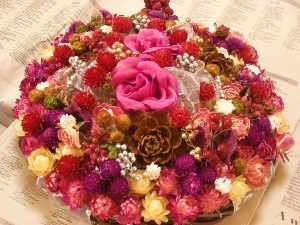 いつもご訪問、コメントありがとうございますありったけのドライフラワーの細かいのを使ってみました。貝細工に千日紅、ミニバラ、ペッパーベリー三色、アイビー、シダーローズ、センダンの実。バラマダム ヴィオレの花弁も捨てられず隙間に~何味かしらスイーツデコで使ったホイップも少々勿体無いを寄せ集めたパイになりました