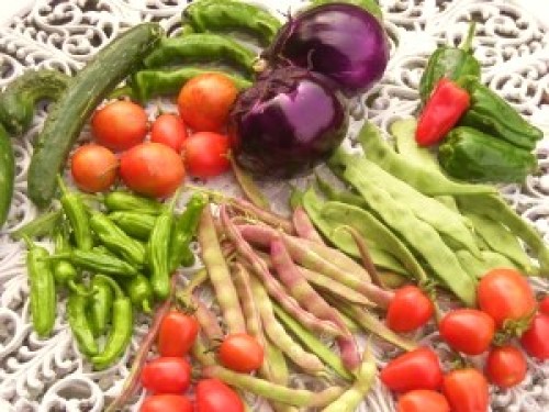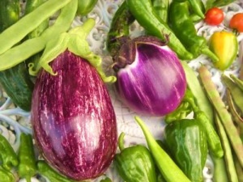 いつもご訪問、コメントありがとうございますシークレット・ハーブ畑と秋野菜限定の菜園は只今大型工事につき拡張になるのか否か、大型重機数台が行き来しておりますこれからの手入れを考えたら樹木を植えることは控えたいのですが折角 ついでですから樹木又は手持ちの鉢植えを定植できるスペースも出来ればとはいえ夏場は蛇苦手な両親の地植えの菜園は手入れも業者任せですので大中小プランター80個のボリジ亭のプランター菜園がメイン夏野菜本番 もぎ立てが即ボリジ亭の厨房に届きます今年はミニのパプリカ2色栽培 まずは赤を収穫 似た者同士ですが京まんじゅう茄子と とんとろ炒め茄子やらず豆は光の当たり具合で紫色が入るようですシシトウは とっても軟らか鉢植えの支柱無しで育てられるミニトマトも追加この季節 受粉の為 ラップで包まれた雄花が冷蔵庫で常駐ちょっと大きくなったズッキーニも追加次々足止めされての収穫 7月中旬 一日分です培養土の袋そのままに種蒔きして栽培していたゴボウの花が開花虫食い穴でスイスチャードに表情が種苗屋さんでも耳にしましたが、今年は害虫も多いようす家族皆初めてのヘビトンボなる見たこともない羽が蝉のようなトンボにも出会いましたさぁ~てと収穫した野菜に合わせて作るボリジ亭の夏のメニュー二日分貯めたミニトマトは甘いワインのシロップに漬けてみました