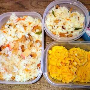 いつもご訪問ありがとうございますアレルギー対応ならずの場所へ お出掛け椎茸、蓮根、ニンジン、インゲン、竹輪、蒲鉾を具に ばら寿司3合分お花玉子焼きと錦糸卵ボリジの花も持参サラダから もものすけ蕪と紫キャベツハロウィン仕様の ばら寿司梅干しの赤紫蘇利用の紅生姜も忘れずレンジ加熱し蒸し寿司にも間引きのもものすけ蕪を添えてまだまだ あります持参した笹の葉で熱々に加熱したばら寿司を包んで寿司酢で簡単甘酢漬けにした蓮根と型抜きした花と瓢箪形のニンジン即席漬け物液ベースに茄子とミョウガ、新生姜を漬けた梅干しの赤紫蘇利用の しば漬けレタス2種類、紫キャベツ、キュウリ、ニンジン、パプリカ、黄ミニトマト、もものすけ蕪、紅芯大根のサラダプラス紫水菜、生ハムラ・フランスも2個 所持果物ナイフに可愛い紙皿も届くがカットするのもメンドイので追熟っ放置松茸ご飯2合分カナダ産ですがぁ~ドライパセリ振りふりクリームシチュー郷土料理旬なのに冷凍里芋醤油ベース、牛肉入りの芋煮汁ニンジンに見えるはコンニャクニンジンは入らない、大根やナメコ入りしない豆腐が入るかキノコは舞茸かシメジ、ヒラタケか論争が広がる醤油ベース、牛肉入り地域そして芋は里芋と共通、厚揚げが入る地域酒粕も入ることもある味噌ベース、豚肉入り地域もありますラ・フランスにシークァーサーも届く朝食用に いかがウィンナーコンビニのサンドイッチとも来るまだサラダにはラ・フランス参加せず果物ナイフまで届いているのだから生ハム巻きにでも~なんでしょう生ハムはパックのままヨーグルトも届いてますこっそり試し掘りしたらしい大中小100個のプランター菜園で栽培のサツマイモ追熟中につき まだ甘さ無く鮮やかなオレンジ色になるハロウィンスイート黄身が濃い卵の茹で卵茹でカリフラワーにビーフシチュー豚肩ロース肉の味噌漬け、焼き魚は目抜け竹輪とイカ、パプリカの和え物に盛り付けの際の彩りに紫大根スライスまだ間引き菜の かつお菜と白菜の煮浸し椎茸がぁ~最近 始めた自家栽培椎茸がポイントらしいトマト缶、熟したトマトプラスで美味しく仕上がったと自慢のビーフシチューさとママさんのレシピです早朝にと野菜たっぷり弁当切れてるチーズだったと言うがどのように切れているのか興味津々今時 珍しいタイプな調理人紅白で長いタイプのラディッシュは片側 切り目か蛇腹にしてちょうど朝食用に届いたウィンナーみたいに虫っぽい甘酢漬けの予定がそれも珍しいっ普通に浅漬けに変更したと甘めの玉子焼き付きオレンジカリフラワーも届き2色に白菜と かつお菜、パプリカのお浸しプランター菜園から収穫、保存継続中の玉葱とパプリカ、シメジ、ハムの炒めプランター菜園の三つ葉プラス「朝の梅干しは難逃れ」新米、しっとり海苔、自家製梅干し落ち着くっ解凍、熱湯殺菌した笹の葉 添えて食器、レンジを お借りして盛り付け軽~く ゆる~く湯治に出掛けて来ました