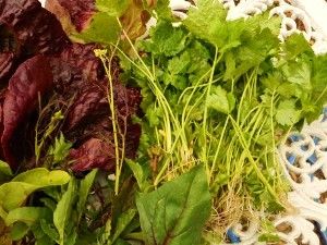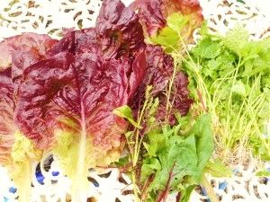 赤レタス、赤茎サラダホウレン草、三つ葉