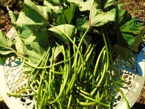旬にはファーマーズマーケットにも並ぶサツマイモの茎