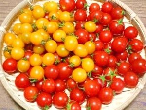 写真左の赤ミニトマトは花鳥風月という名前、黄色種共々購入