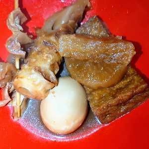 大根、厚揚げ、焼き竹輪、牛スジ、茹で卵